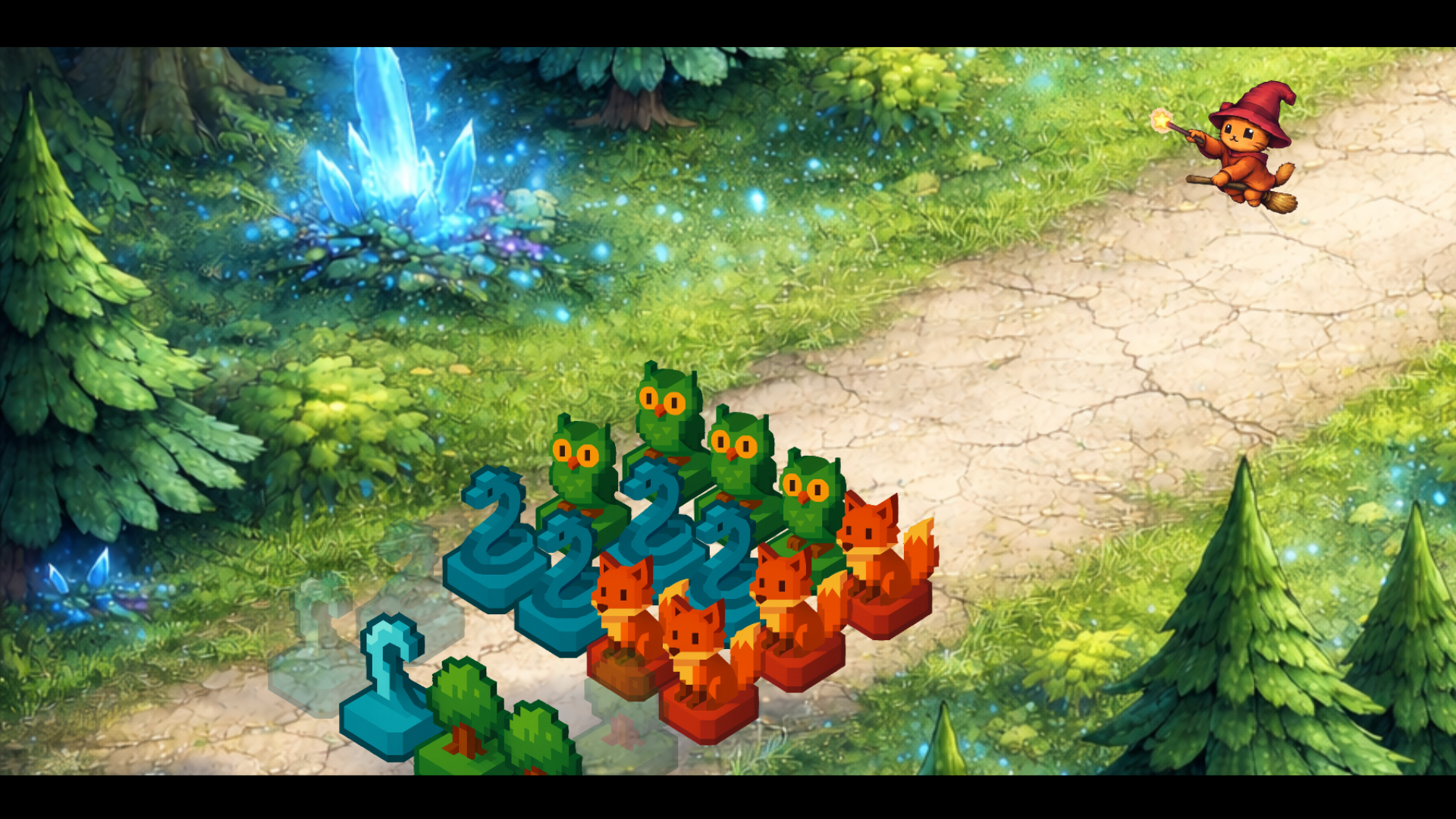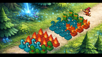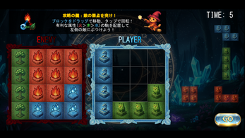 Let’s fight the forest monsters using “Magia,” a magic that lets you battle with Fire, Water, and Wood element pieces!